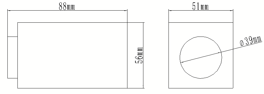 88mm*51mm*56mm (116mm*51mm*56mm med halebrett) |