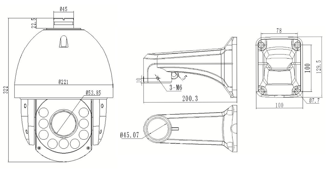 PAN/TILT RANGE | PAN: 360 °; Vippe: - 10 ° - 90 ° |